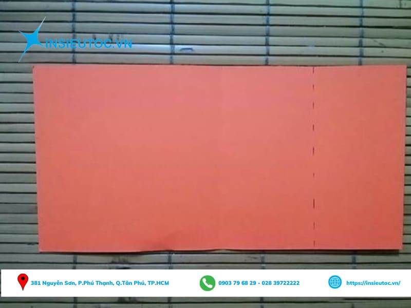 Bước 1: Bạn cần chuẩn bị 1 tờ giấy màu hình chữ nhật, kích thước bằng 2 tờ giấy vuông. Đừng quên dùng bút lông đánh dấu vị trí gấp.