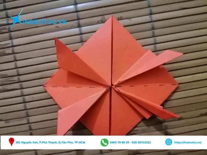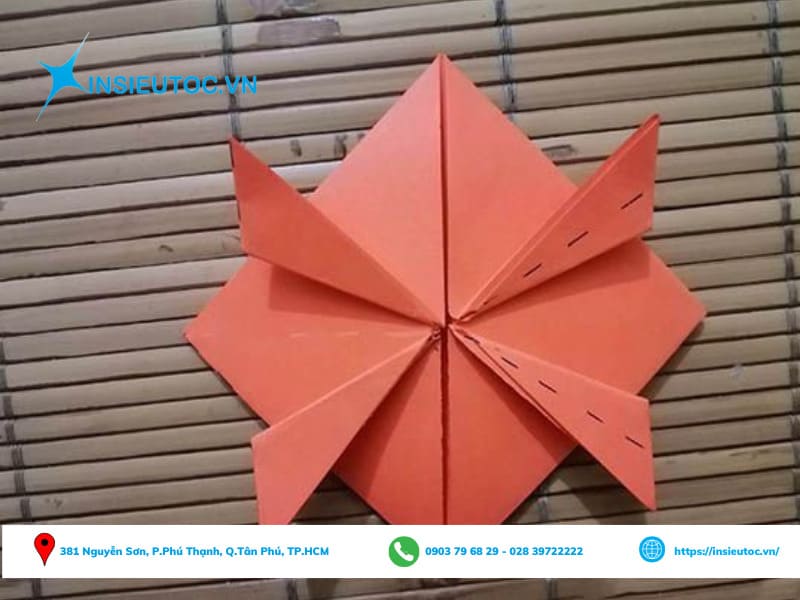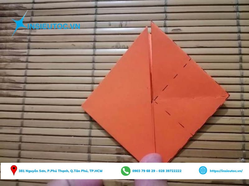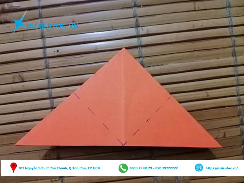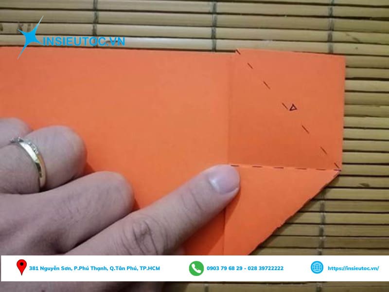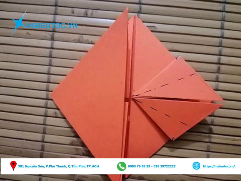 Bước 6: Lật sang mặt giấy còn lại và tiến hành gấp theo phần đánh dấu.