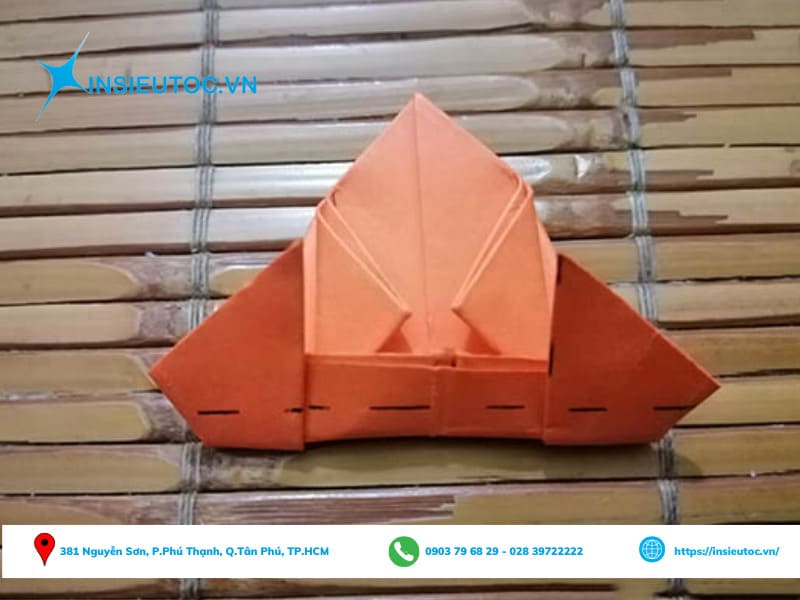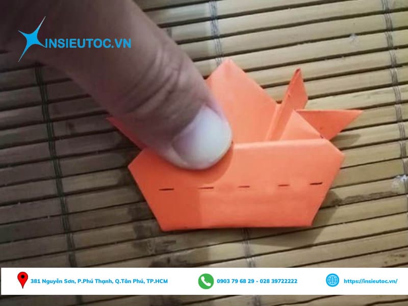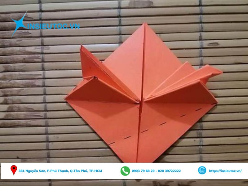Bước 5: Sau đó, gấp hai bên vị trí đánh dấu vào giữa là bạn đã thực hiện xong phần chân ếch.