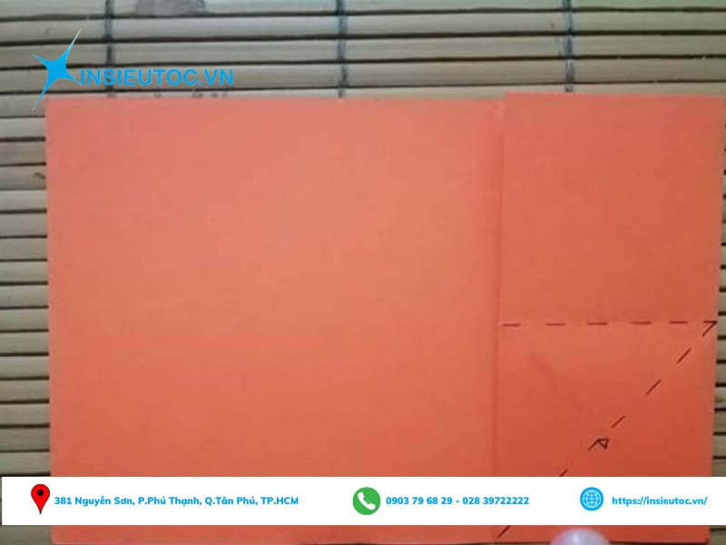 Bước 2: Gấp ¼ hình chữ nhật theo vị trí đã đánh dấu.