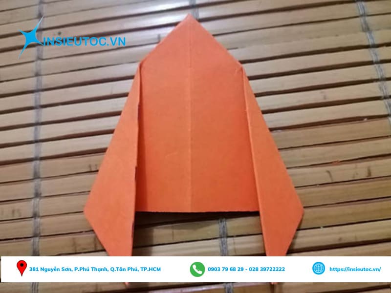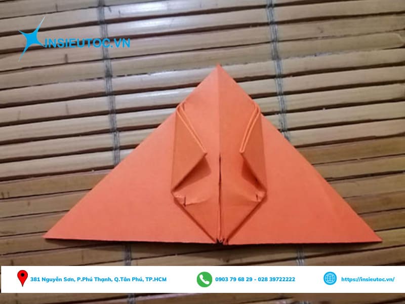 Bước 8: Sau đó, tiến hành gấp hai góc của hình tam giác về phía đỉnh