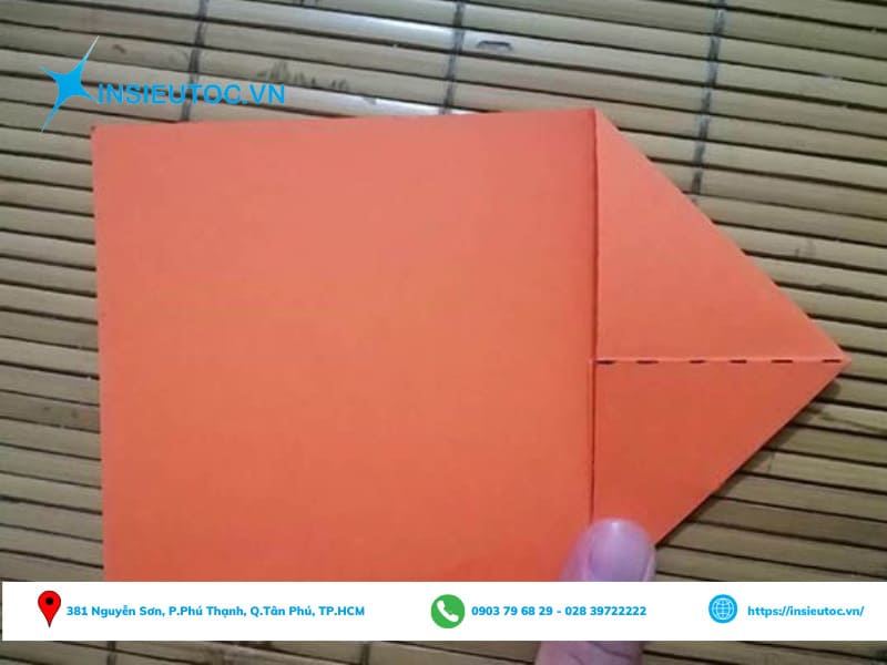 Bước 2: Gấp tờ giấy làm đôi, sau đó gấp chéo phần ngoài tờ giấy vào giữa