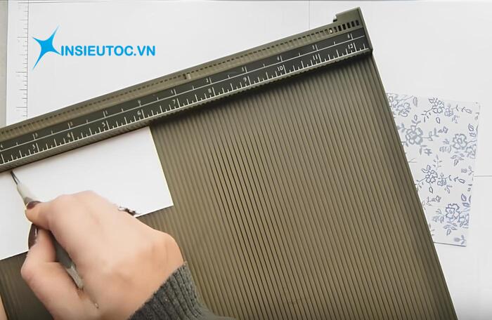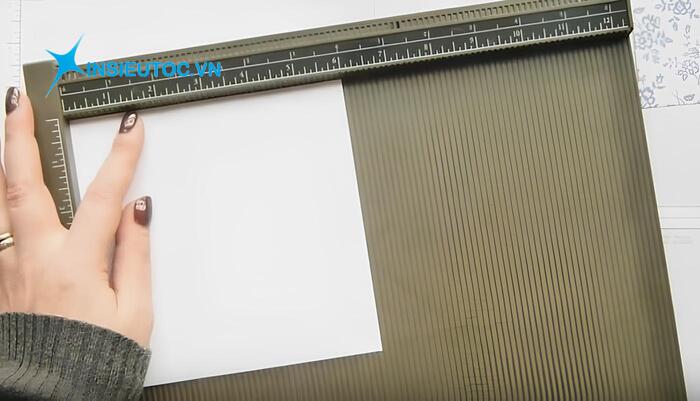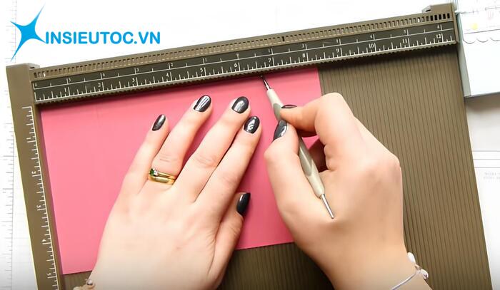 - Bước 1: Bạn đặt tờ giấy hình chữ nhật có kích thước 17×30,5 cm lên thước kẻ. Kẻ các đường từ mép giấy bên trái theo chiều dài lần lượt là 3,8cm, 13,3cm, 17,1cm, 26,7cm. Tương tự như cách trên, bạn xoay theo chiều rộng và kẻ các đường cách mép trái lần lượt là 3,8cm, 13,3cm.