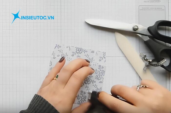 - Bước 3: Cắt 2 mép gấp của hình vuông nhỏ dọc theo 2 cạnh chiều dài sao cho hơi vát vào trong.