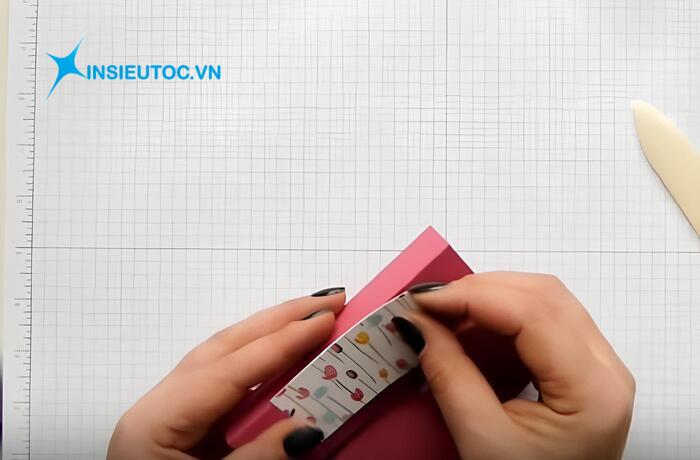 - Bước 4: Dán giấy trang trí lên các mặt chính gồm mặt chính giữa và 4 cạnh hình chữ nhật xung quanh nửa tấm bìa.
