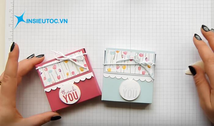 Vậy là bạn đã hoàn thành chiếc hộp nắp rời, rất phù hợp để làm quà tặng dễ thương và xinh xắn. Tuy nhiên, chúng tôi muốn chỉ cho bạn cách làm hộp quà số lượng lớn mẫu thứ hai, có thể bạn sẽ thích nó? Hãy theo dõi phần tiếp theo!