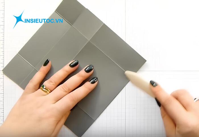 - Bước 3: Hãy gấp các đường kẻ thành nếp trên cùng một mặt bằng sử dụng một que dẹt.