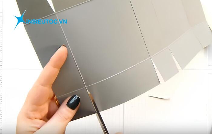 - Bước 3: Bạn dùng thanh phẳng miết các nếp gấp của tờ giấy để làm thân hộp trên cùng một mặt. Sau khi mài xong, bạn cắt cạnh ở 4 góc như hình bên dưới.