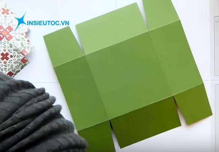 - Bước 4: Bạn tiến hành cắt miếng bìa để gấp hộp như trong hình