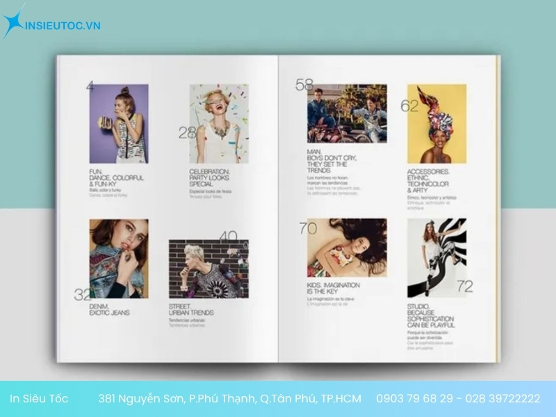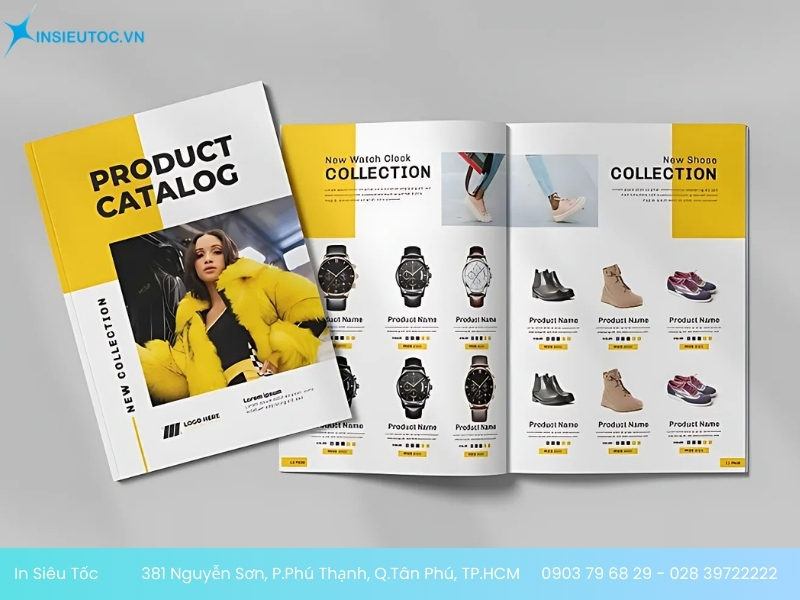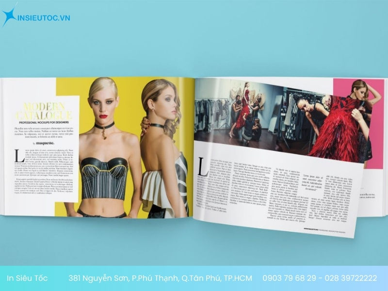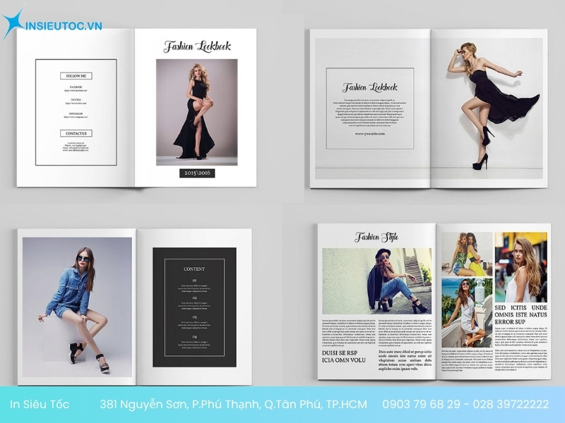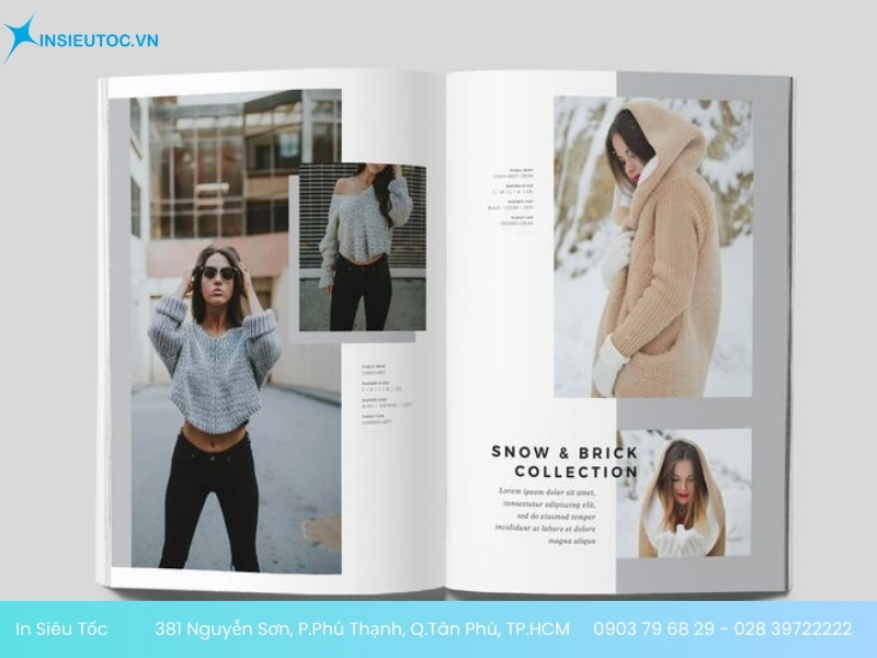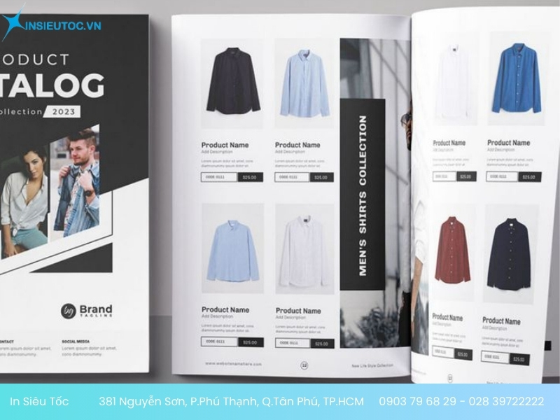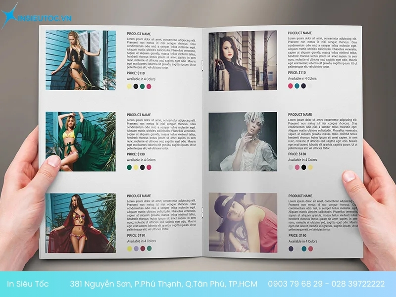 - Để nhận thông tin bảng báo giá in catalogue thời trang chính xác nhất. Bạn cần liên hệ trực tiếp qua Hotline: 0903 79 68 29 – 028 39722222 hoặc Email: sales.insieutoc@gmail.com, nhận viên In Siêu Tốc sẽ tư vấn và báo giá chi tiết đến bạn.
