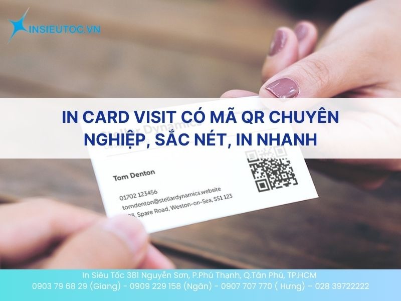 Card visit có mã QR không còn là một lựa chọn xa lạ mà đã trở thành một công cụ kết nối thiết yếu trong môi trường kinh doanh hiện đại. Nó không chỉ thể hiện sự chuyên nghiệp, sáng tạo mà còn giúp tối ưu hóa việc truyền tải thông tin một cách nhanh chóng và hiệu quả. Tại In Siêu Tốc, với kinh nghiệm lâu năm và công nghệ in ấn tiên tiến, chúng tôi cam kết mang đến những sản phẩm card visit QR code chất lượng cao, sắc nét với giá cả cạnh tranh. Hãy liên hệ ngay tới In Siêu Tốc để được tư vấn và sở hữu những tấm danh thiếp ấn tượng nhất.