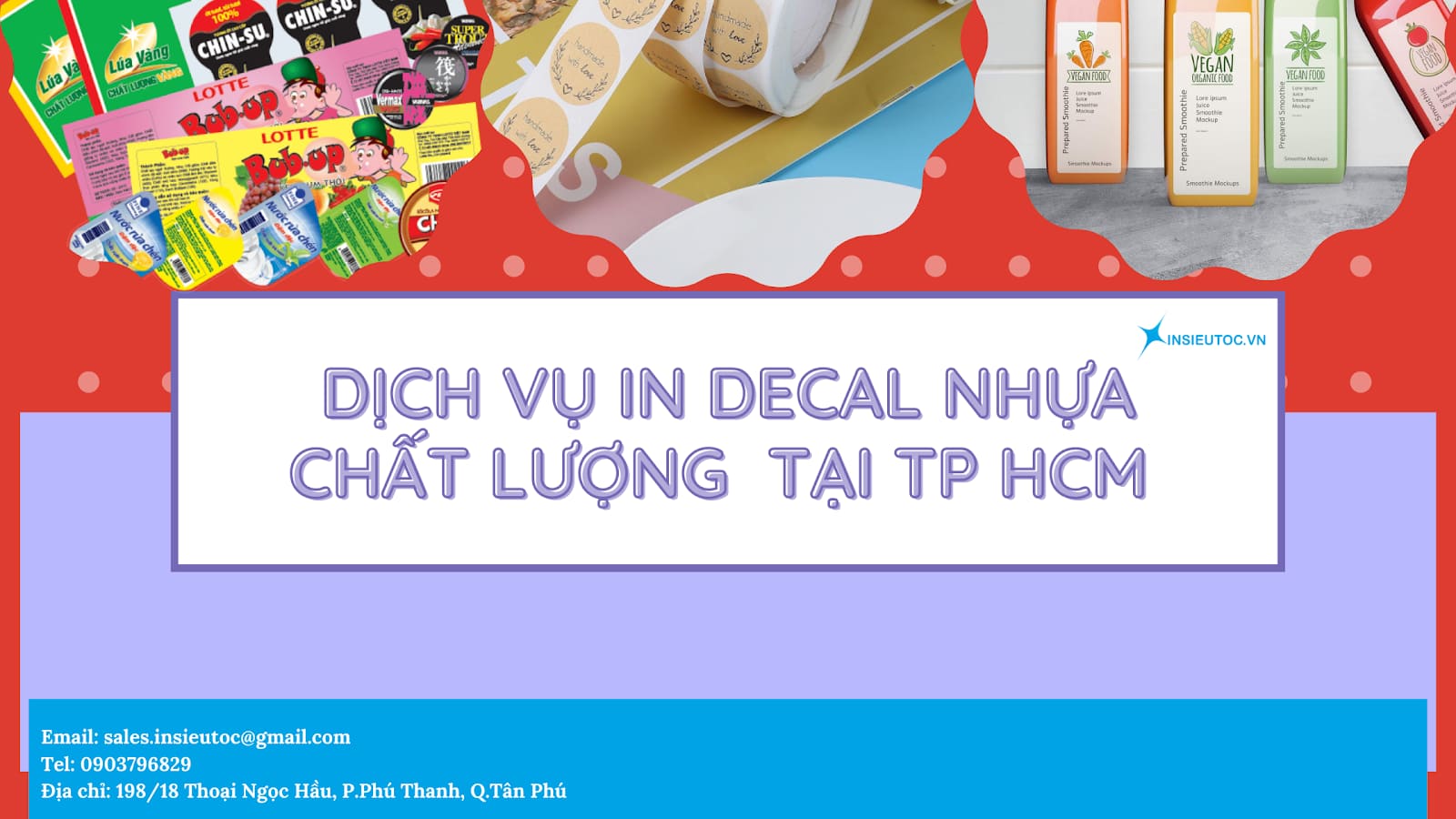 Công ty In Siêu Tốc chuyên nhận in decal nhựa trên mọi sản phẩm theo yêu cầu của bạn. Công nghệ in Offset hiện đại cùng đội ngũ nhân viên tay nghề cao đảm bảo mang đến những sản phẩm chất lượng nhất.