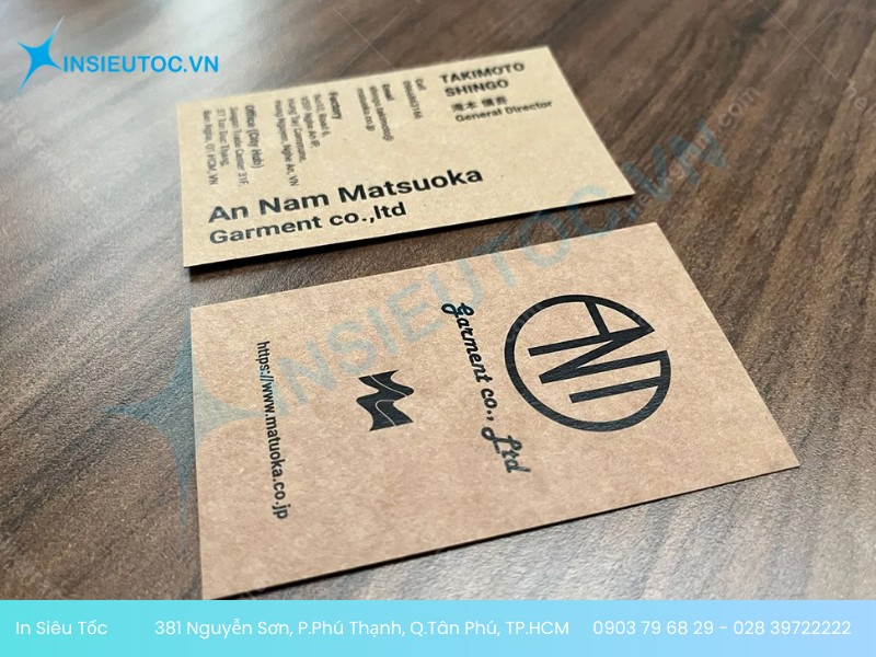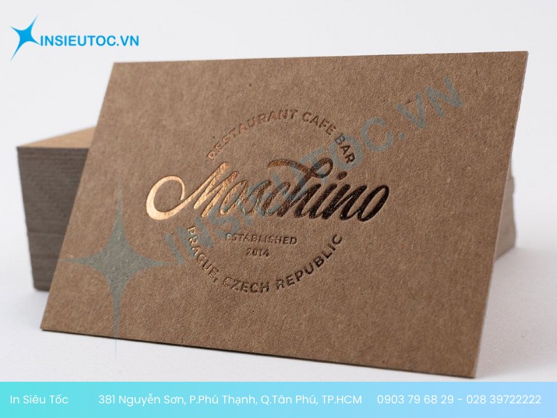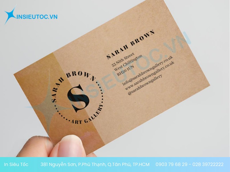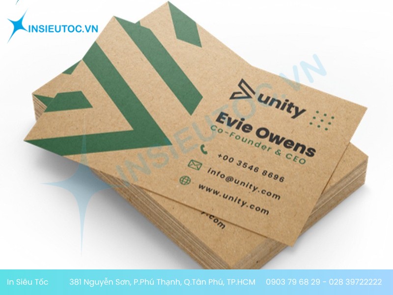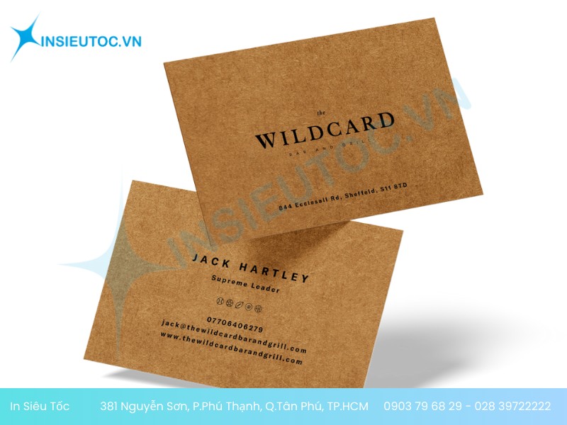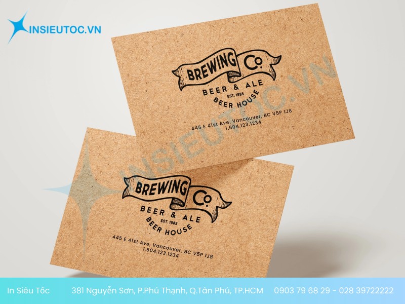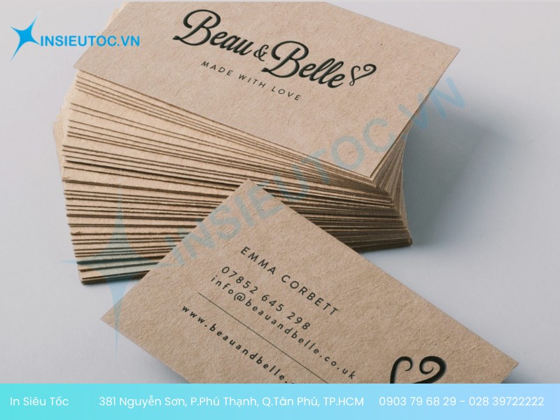 In Siêu Tốc là đơn vị in ấn name card giấy Kraft chất lượng cao với hơn 10 năm kinh nghiệm, cam kết mang đến cho khách hàng sản phẩm ấn tượng và dịch vụ chuyên nghiệp.