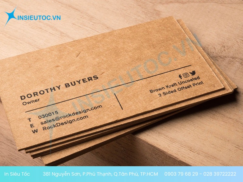 Hy vọng bài viết trên đã giúp bạn hiểu rõ hơn về in name card giấy Kraft, từ những lưu ý quan trọng, bảng giá, đến các mẫu mã độc đáo. Nếu bạn đang tìm kiếm một địa chỉ in ấn uy tín, chất lượng cao với giá cả phải chăng, hãy liên hệ ngay với In Siêu Tốc. Chúng tôi luôn sẵn sàng tư vấn và đồng hành cùng bạn để tạo ra những sản phẩm name card giấy Kraft ấn tượng và phù hợp nhất!