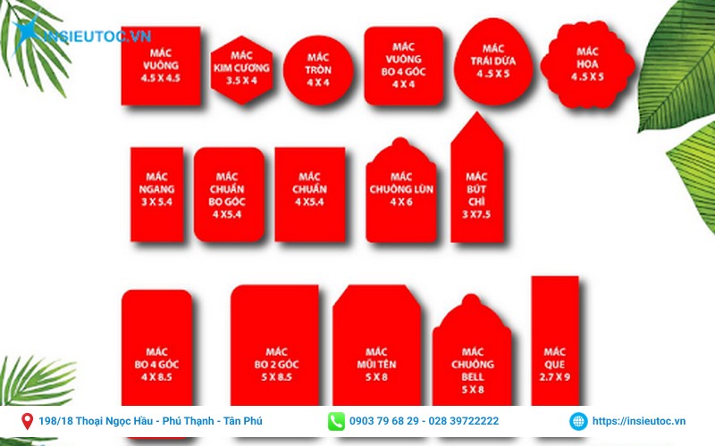 | Mác vuông | 4×4 cm đến 4.5×4.5 cm | 310.000 đ | 335.000 đ | 490.000 đ | 518.000 đ | 690.000 đ | 1.030.000 đ |