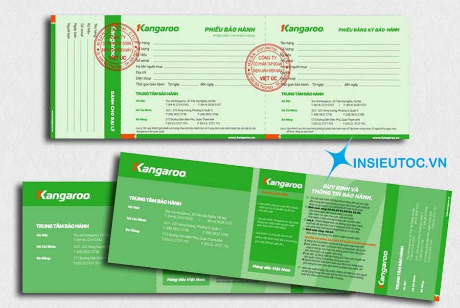 - Công nghệ in: Công nghệ In offset 4 màu, 2 mặt vừa đảm bảo được sự chỉn chu và tinh xảo của phiếu bảo hành, vừa tối ưu được giá thành sản phẩm.