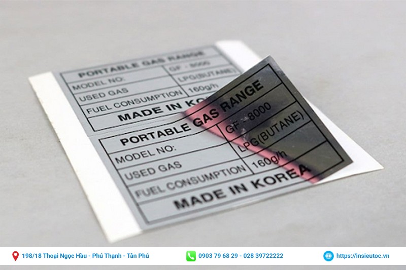 - Mọi loại Tem nhãn bạc sẽ có các đầu mục thông số chuẩn theo Nghị định số 43/2017/NĐ-CP về Nhãn hàng hóa như sau: Hướng dẫn sử dụng, thông số kỹ thuật, nguồn gốc xuất xứ, nhà sản xuất, hướng dẫn sử dụng, cảnh báo, loại model.