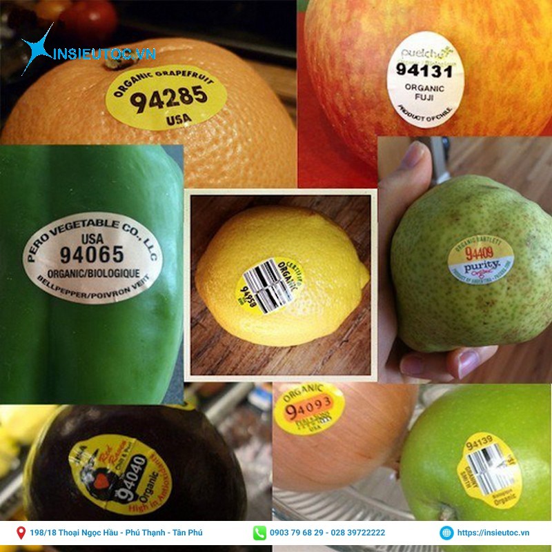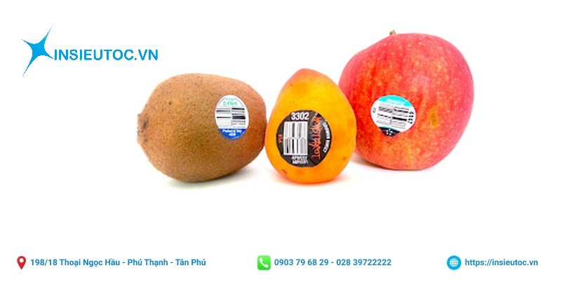 - Tem dán trái cây được in trên chất liệu decal giấy