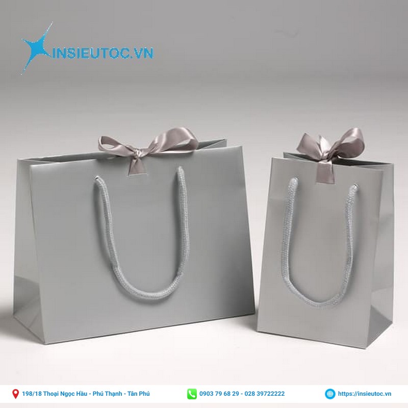 - Giá in túi giấy có thể thay đổi tùy thuộc vào nhiều yếu tố như kích thước, chất liệu giấy, phương pháp in, số lượng đặt hàng và các dịch vụ gia công đi kèm. Để nhận được báo giá in túi giấy chính xác và minh bạch nhất, quý khách vui lòng liên hệ trực tiếp qua hotline 0903 79 68 29 – 028 39722222 hoặc gửi email đến sales.insieutoc@gmail.com.