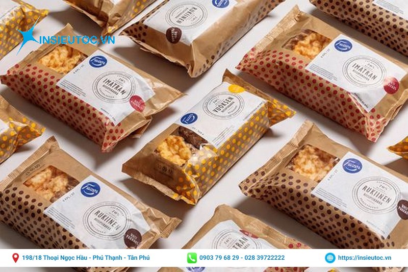 – Thay vì đựng bánh trong giấy báo bình thường hay túi nilon không đảm bảo an toàn sức khỏe và gây ô nhiễm môi trường. Bạn hãy đựng bánh trong bao bì túi giấy có thể in đầy đủ thông tin cửa hàng, địa chỉ, loại bánh, giá cả,…
