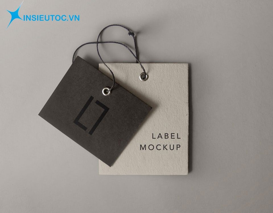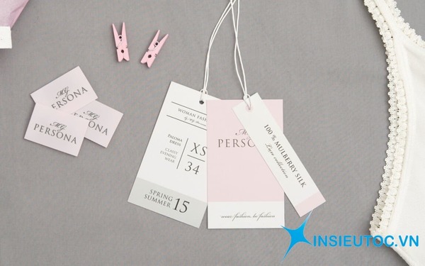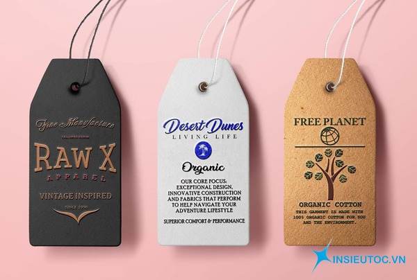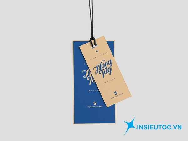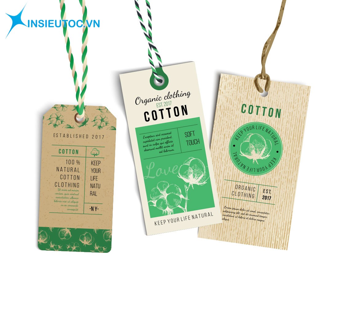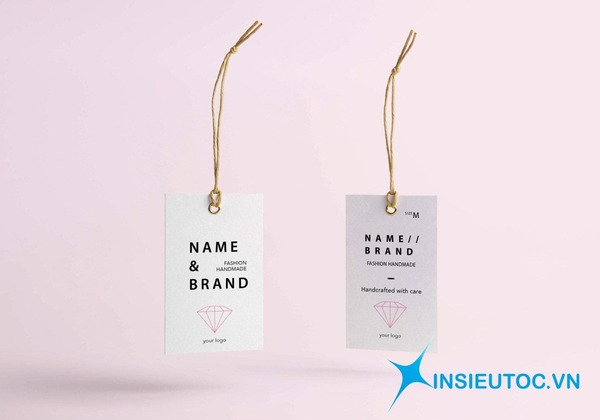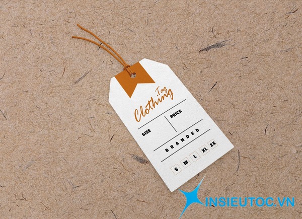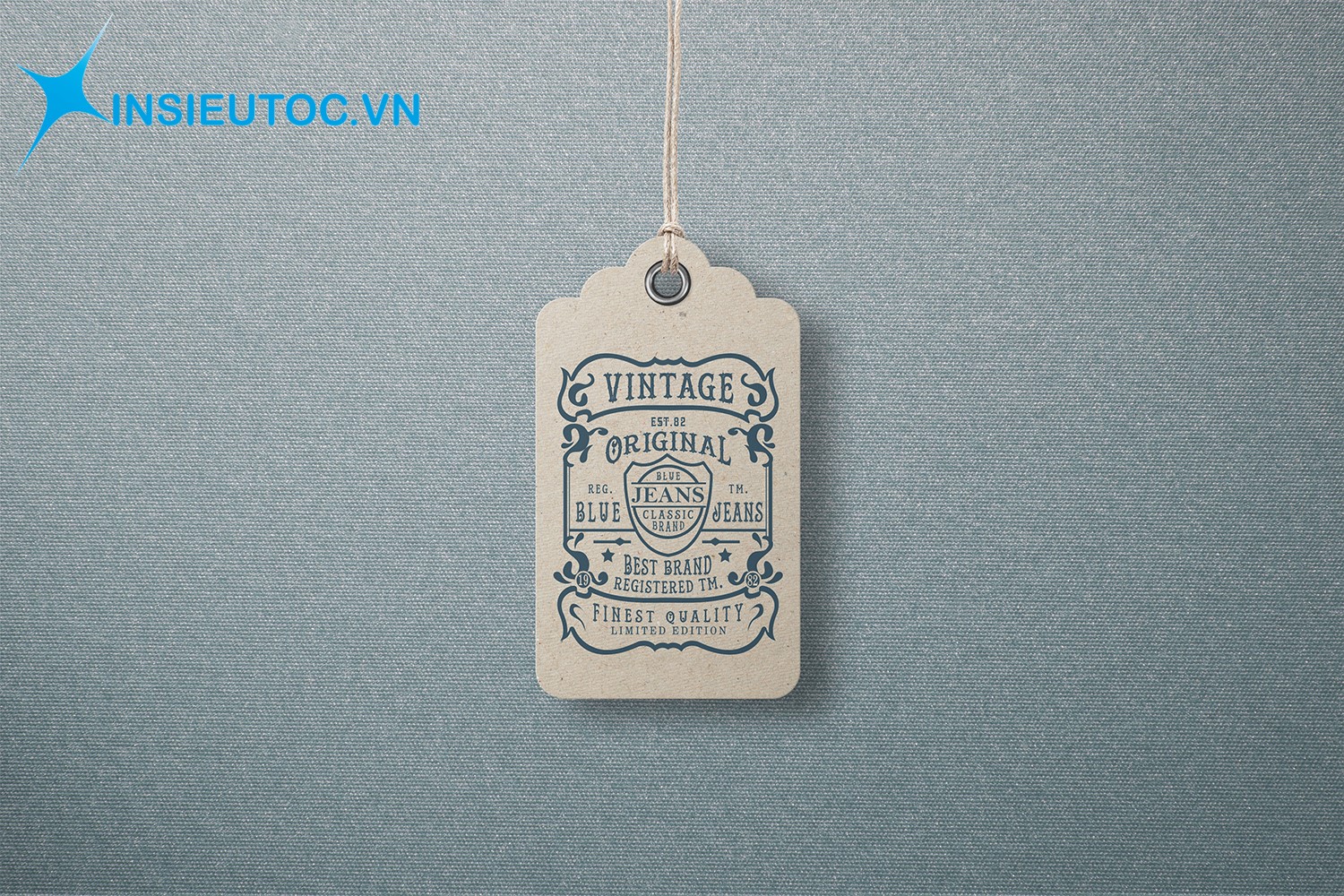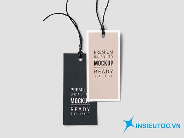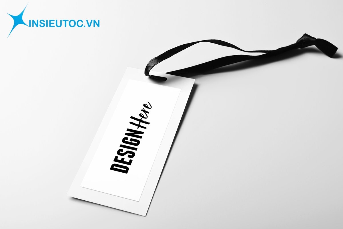 - Giấy (Hang Tags): Nếu bạn đang in mác quần áo theo kiểu tag treo, giấy là chất liệu phổ biến, thường có độ dày và độ bền vừa phải.