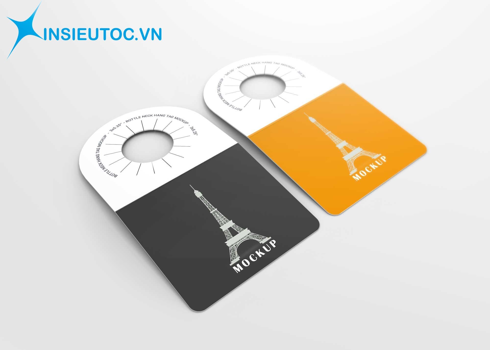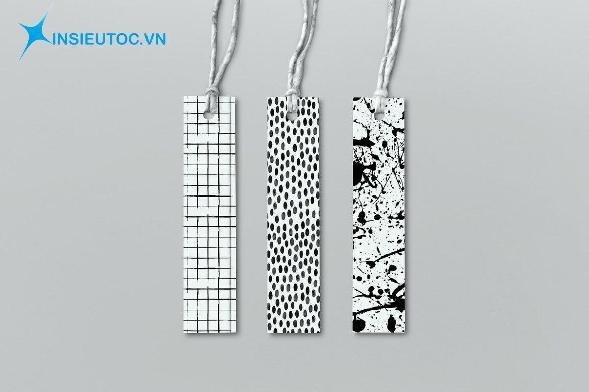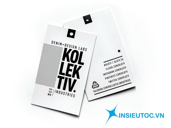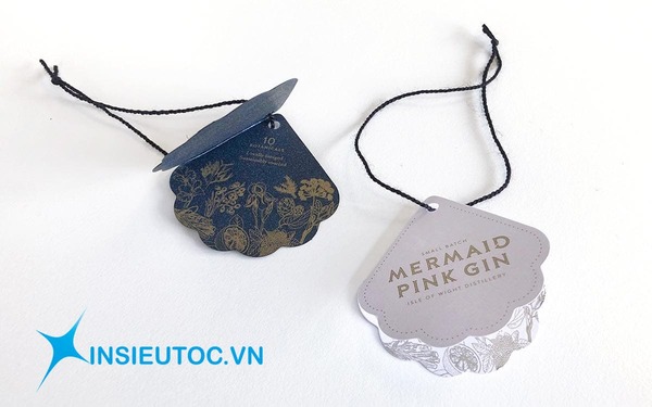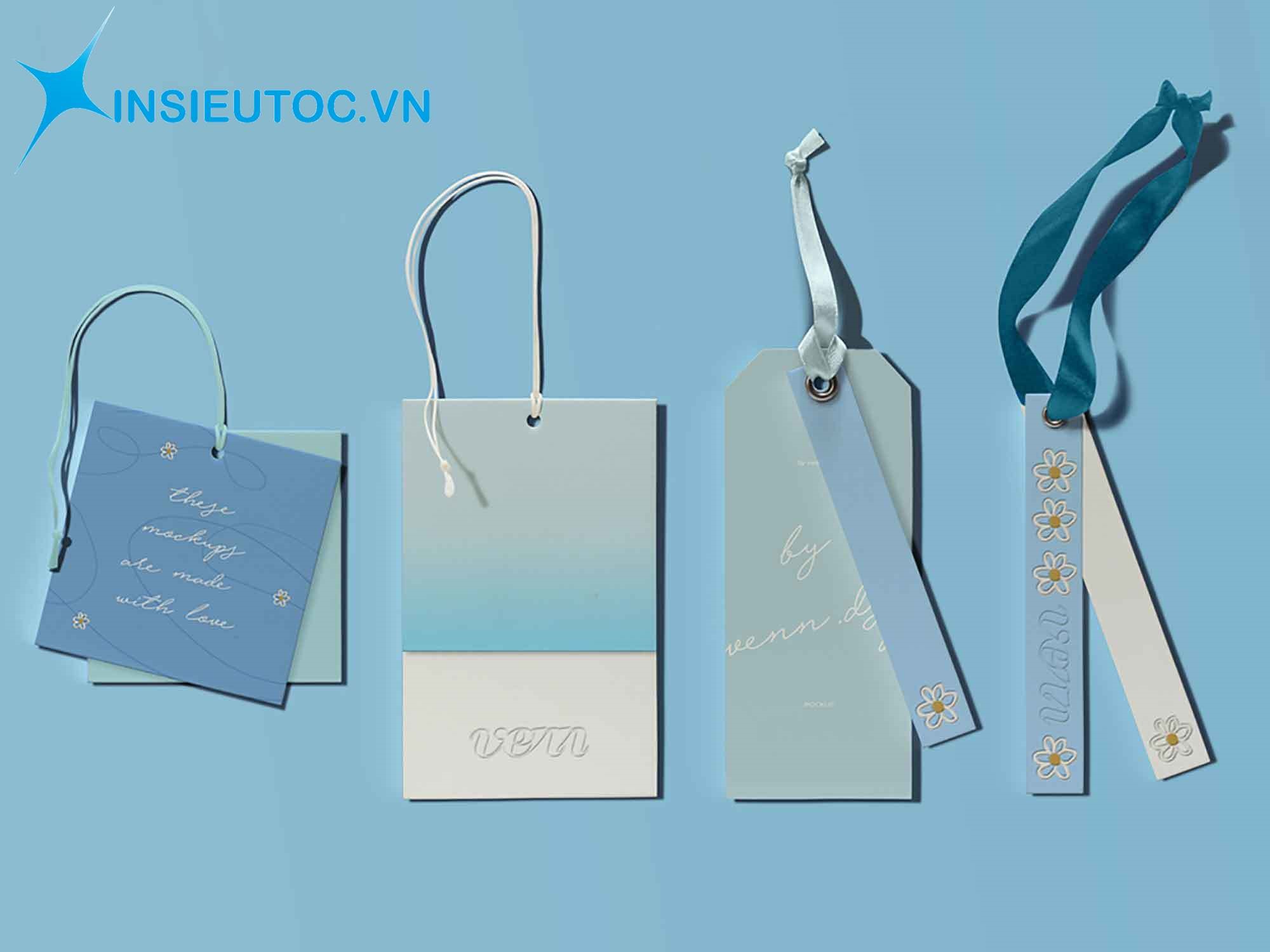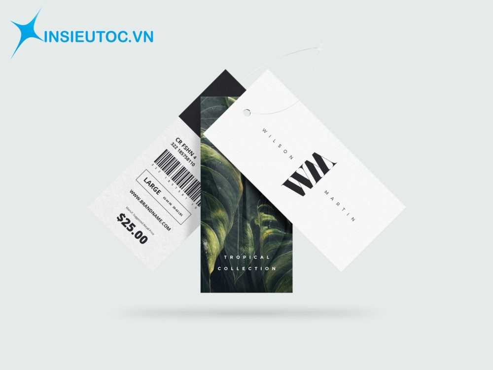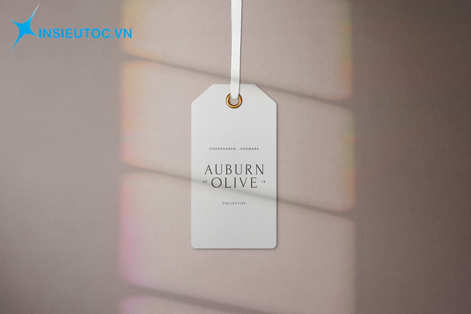 - Giấy (Hang Tags): Nếu bạn đang in mác quần áo theo kiểu tag treo, giấy là chất liệu phổ biến, thường có độ dày và độ bền vừa phải.