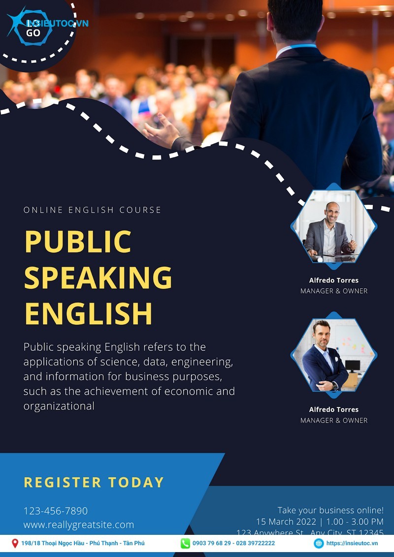 ▶ Tên của trung tâm tiếng Anh cùng câu slogan đi kèm: Nội dung này cần được thể hiện nổi bật và bắt mắt nhất để thu hút người đọc.