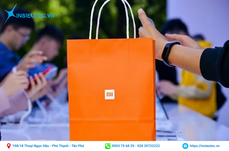 Túi giấy của thương hiệu Xiaomi với màu cam chủ đạo