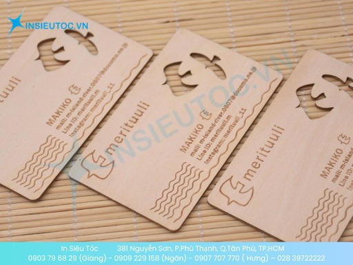 - Gỗ: Sử dụng lát gỗ mỏng tự nhiên được khắc laser tinh xảo, mỗi chiếc card là một phiên bản độc nhất với vân gỗ riêng, mang lại cảm giác ấm cúng và thân thiện.