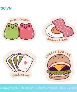 Sticker cute là những miếng dán nhỏ với hình ảnh dễ thương, được sử dụng rộng rãi để trang trí và làm đẹp các vật dụng cá nhân như điện thoại, laptop, mũ bảo hiểm, quần áo, và không gian sống. Chúng thường được in bằng công nghệ offset hoặc kỹ thuật số, với hai chất liệu phổ biến là giấy và nhựa, đáp ứng đa dạng nhu cầu sử dụng.