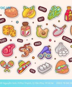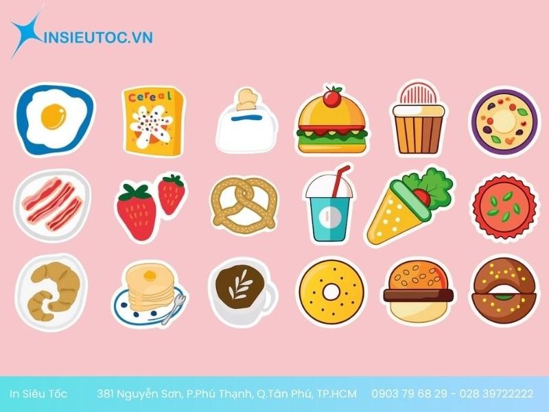 Để giúp sản phẩm của bạn thật sự nổi bật và thu hút ánh nhìn, việc chọn những mẫu sticker hình dán đồ ăn độc đáo là điều không thể thiếu. Dưới đây là bộ sưu tập các mẫu sticker bắt mắt, chắc chắn sẽ thu hút khách hàng từ cái nhìn đầu tiên được thực hiện bởi In Siêu Tốc: