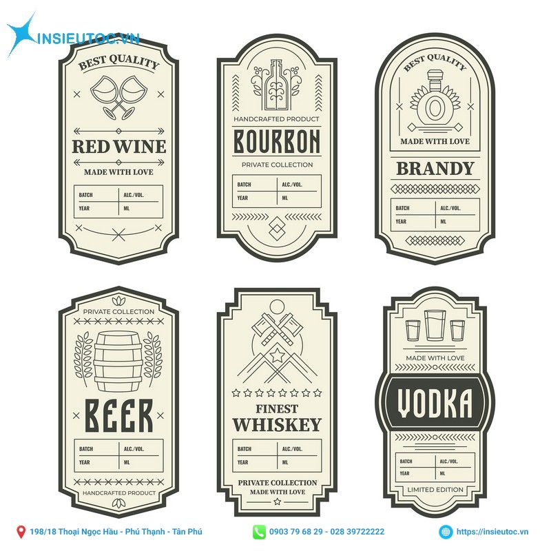 In Siêu Tốc cung cấp dịch vụ thiết kế tem nhãn rượu chuyên nghiệp theo yêu cầu của khách hàng, giúp đảm bảo sản phẩm của bạn nổi bật và phù hợp với phong cách thương hiệu.