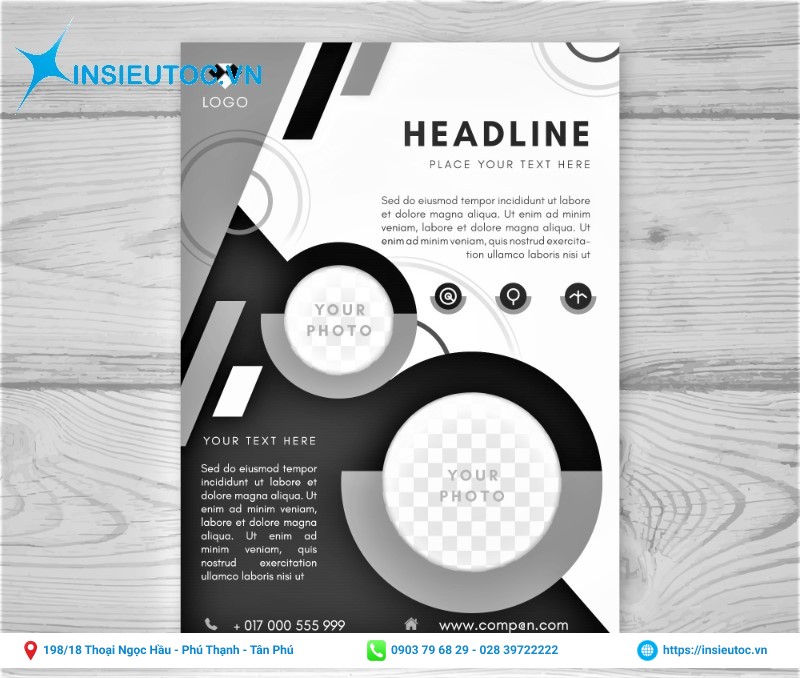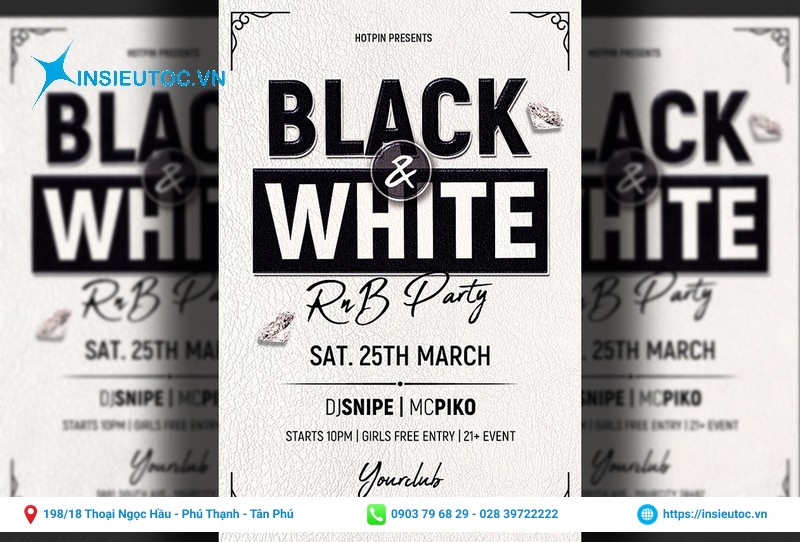 Tại In Siêu Tốc, chúng tôi gợi ý cho bạn hơn 20 mẫu tờ rơi đen trắng phổ biến, phù hợp với nhiều nhu cầu quảng cáo như thời trang, album âm nhạc,… Với thiết kế tối giản, tờ rơi giúp truyền tải thông điệp nhanh chóng và hiệu quả giúp bạn thu hút sự chú ý từ khách hàng.