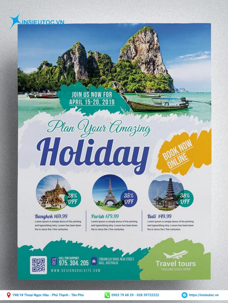 Để thiết kế một tờ rơi du lịch bắt mắt và thu hút sự chú ý của khách hàng, cần chú trọng vào nhiều yếu tố quan trọng. Một tờ rơi không chỉ cần đẹp mắt về mặt hình ảnh mà còn phải truyền tải thông điệp hiệu quả và dễ dàng nắm bắt. Dưới đây là 5 yếu tố cần lưu ý khi thiết kế tờ rơi du lịch: