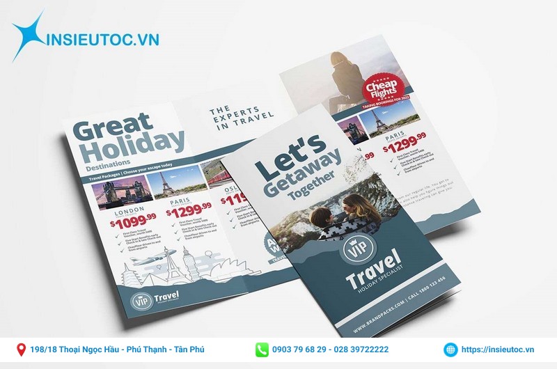 Tờ rơi du lịch là ấn phẩm quảng cáo dùng để giới thiệu ngắn gọn về điểm đến, dịch vụ hoặc tour du lịch. In Siêu Tốc cung cấp dịch vụ in ấn tờ rơi du lịch chất lượng cao, đa dạng về kích thước và chất liệu, với thời gian hoàn thành nhanh chóng. Bài viết này sẽ giải đáp cho bạn tất tần tật về tờ rơi du lịch và top 20 mẫu tờ rơi đẹp mắt. Hãy cùng tham khảo ngay bên dưới!