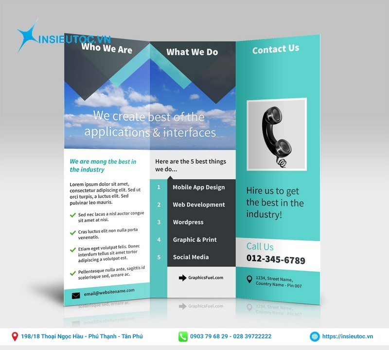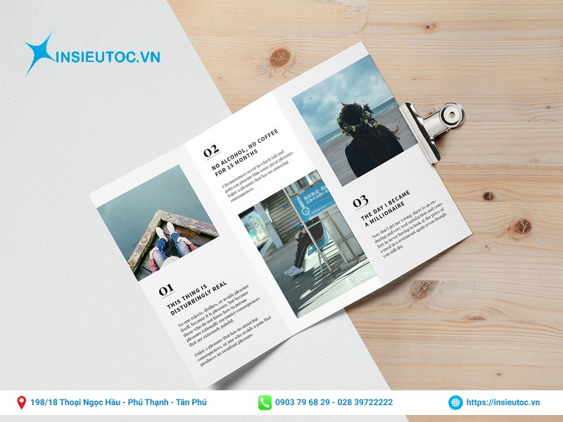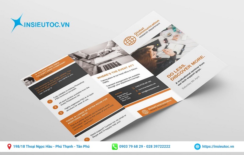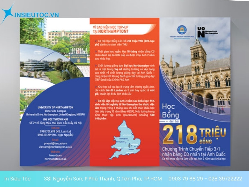 Nếu bạn có nhu cầu in tờ rơi chuyên nghiệp, thiết kế các tờ gấp 3 phục vụ cho hoạt động marketing, quảng cáo sự kiện, chương trình của mình thì hãy nhanh chóng liên hệ với In Siêu Tốc.