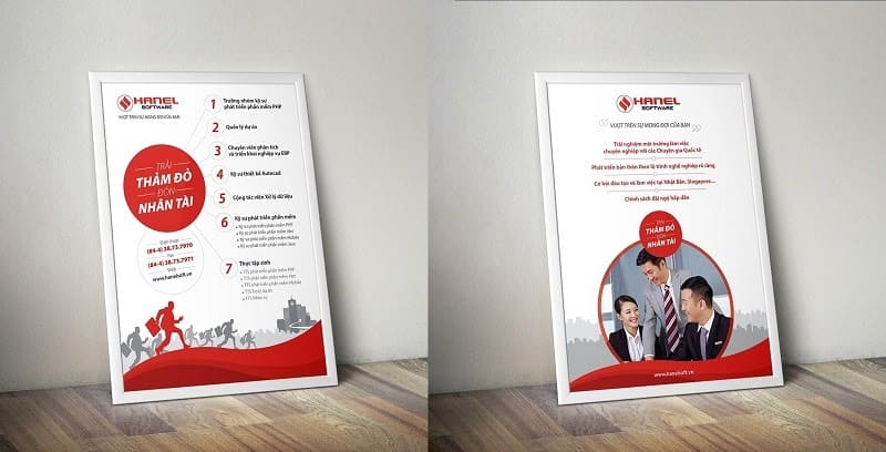 - Hình ảnh: Logo công ty đặt ở góc, hình ảnh môi trường làm việc hoặc văn hóa doanh nghiệp nên đặt ở vị trí trung tâm nổi bật để thu hút sự chú ý.